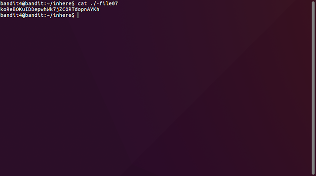 The password for the next level is stored in the only human-readable file in the inhere directory. Tip: if your terminal is messed up, try the “reset” command.