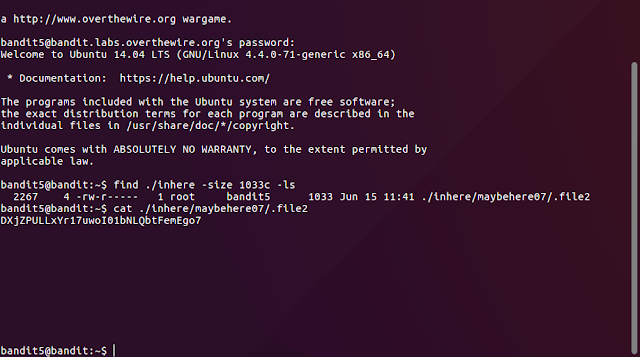 bandit6으로 갈 수 있는 비밀번호를 얻었다.